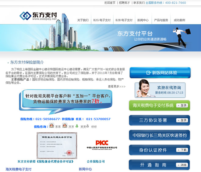 东方电子支付有限公司由上海市信息投资股份有限公司、上海亿马物流系统有限公司、东方口岸科技有限公司共同出资创立的第三方公共电子支付平台。它致力于为中国电子政务、电子商务提供“安全、快捷、完善”的在线支付解决方案,业务范围包括B2C和B2B领域。