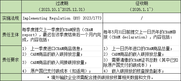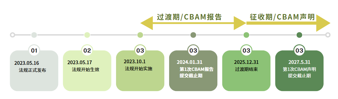 CBAM法规于2023年10月1日开始实施,分为过渡期和征收期: