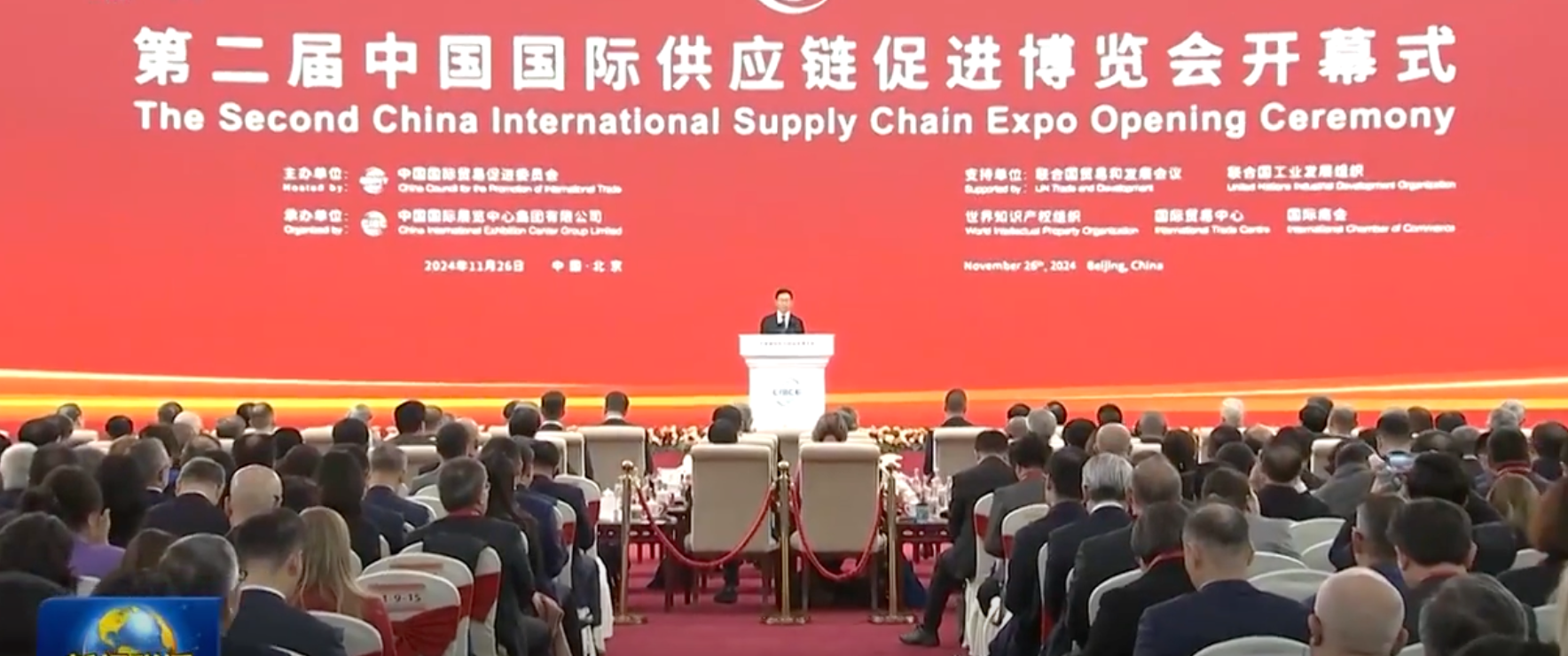 2024年11月26日,第二届中国国际供应链促进博览会(以下简称“链博会”)于北京·中国国际展览中心(顺义馆)盛大开幕。国家副主席韩正出席并发表重要讲话,中国贸促会会长任鸿斌主持开幕式。