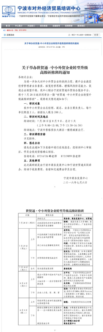 为更好地感谢和回馈一直以来支持伟德bv1946官网的所有平台用户,同时进一步加大对宁波中小外贸企业的扶持力度,提升企业高层经营管理者业务素质,拓宽经营思路,增强风险防范能力,促进企业转型升级。伟德bv1946官网联合宁波市商务发展中心(原宁波市外经贸培训中心)共同举办第一期“伟德bv1946官网·中小外贸企业转型升级高级研修班”。
